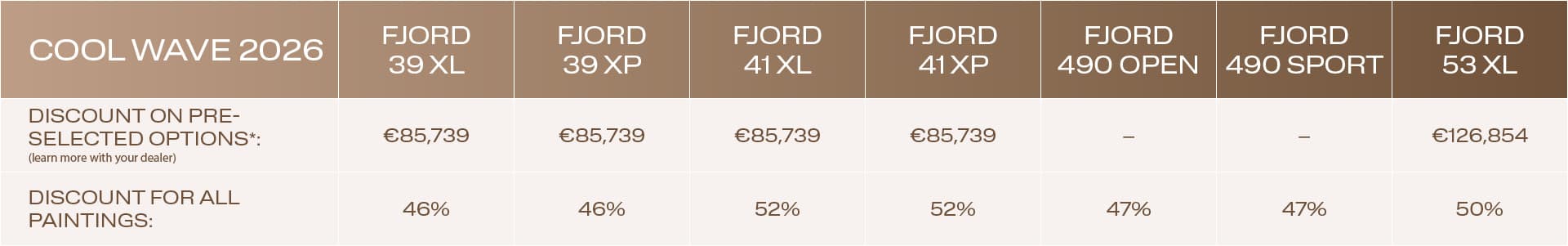 Lire l'article(*) Disclaimer: Maximum stated price advantage is based on the Fjord 53XL model and is available until 15th February 2026. Subject to production schedules, earlier delivery may be possible in individual cases. All prices and stated price advantages include 19% German VAT. Prices and discounts for other markets may vary depending on the applicable local VAT rate. Options included in this offer are non-exchangeable and non-refundable. Unselected or unused options cannot be redeemed for cash or price reduction. This special offer cannot be combined with any other promotions, discounts, or incentive programs. All information is subject to change without prior notice. Errors and omissions excepted.
